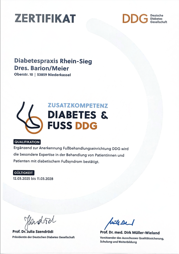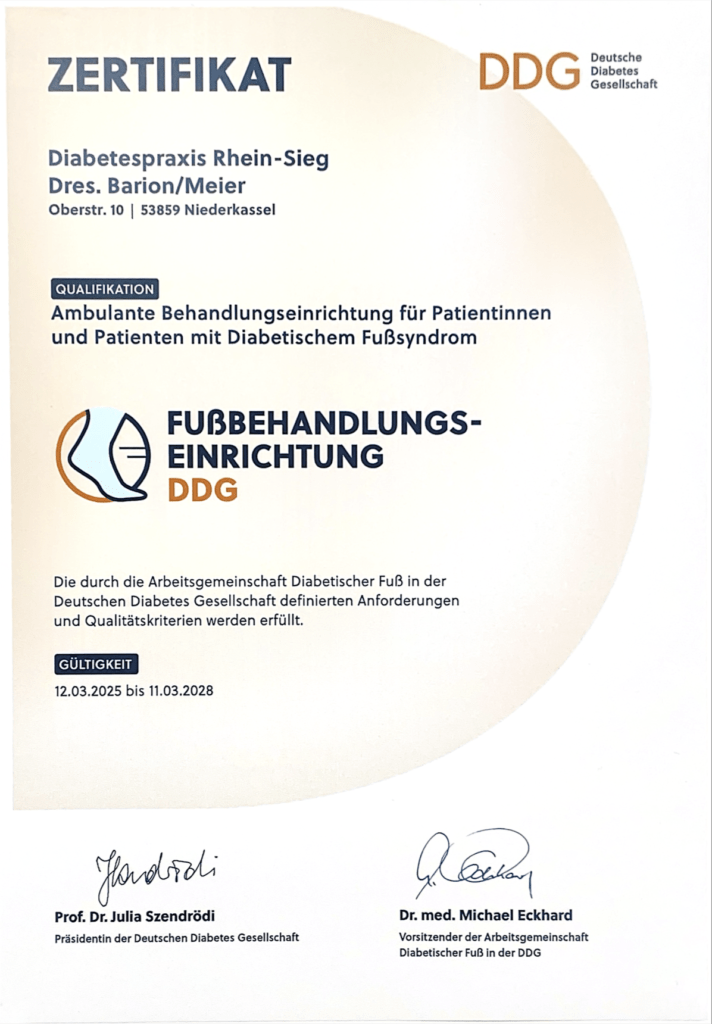 Unsere Schwerpunktpraxis ist von der Deutschen Diabetes-Gesellschaft (DDG) anerkannt als zertifiziertes Behandlungszentrum für Typ 1- und Typ 2-Diabetiker.